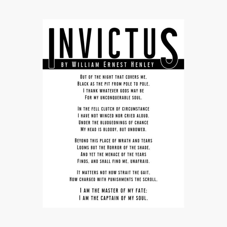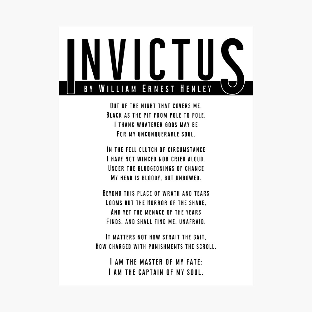 The teen was William Ernest Henley and his poem “Invictus”, expressed the spirit of the modern age, as mankind fought to free itself from the ultimate authority of a supreme, divine Being.